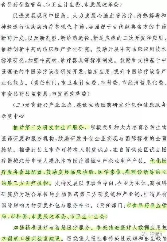 而在《实施意见》中,还提出了要推动第三方研发和生产服务。优化医疗服务资源配置,鼓励发展临床检验、医学影像、病理诊断等独立的第三方医疗机构。