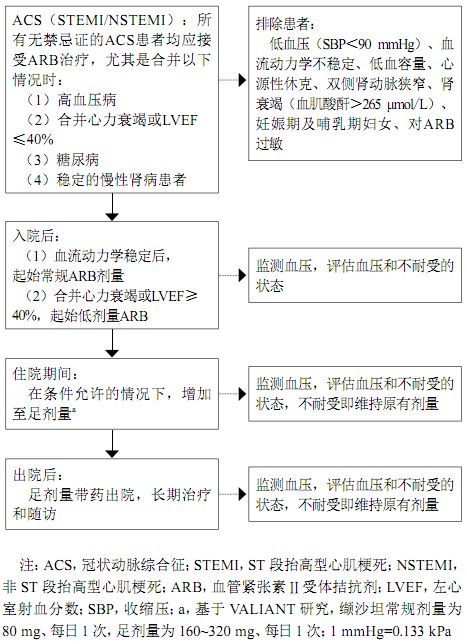 结合临床研究和临床实践可操作性,建议ACS患者应用ARB治疗流程如图1。
