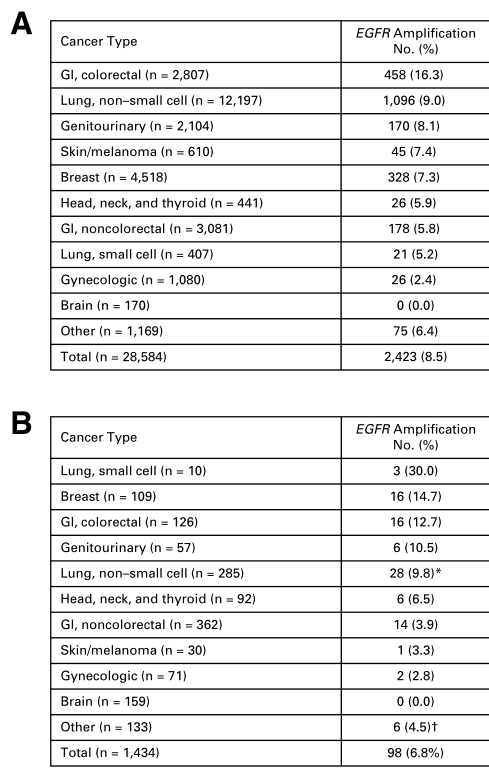 那么EGFR扩增比例有多少?是只有肺癌患者会发生EGFR扩增吗?