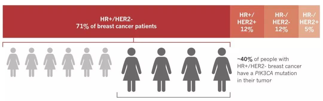 PIK3CA基因突变是乳腺癌中最常见的基因突变类型之一,大约40%的HR+晚期乳腺癌患者携带PIK3CA突变。