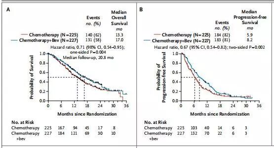 一项II期临床研究GOG 240研究,评估了贝伐珠单抗联合顺铂/拓扑替康和紫杉醇及单独化疗治疗转移性宫颈癌的治疗。结果显示,贝伐珠单抗组较对照组显著改善患者mOS(17.0 vs 13.3 个月; HR 0.71)和mPFS(8.2 vs 5.9个月; HR 0.67)。