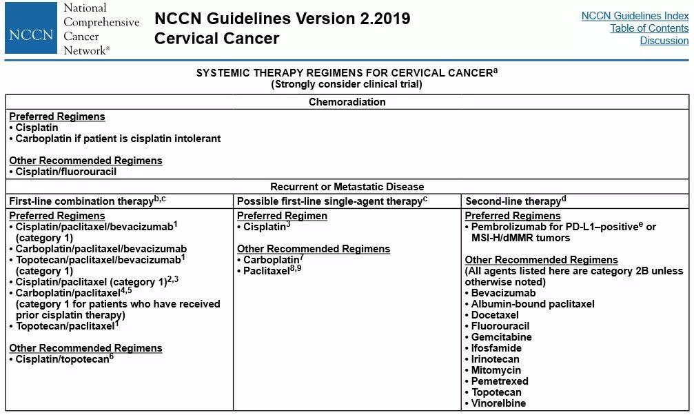 2019V2宫颈癌NCCN指南提到,免疫治疗(帕博利珠单抗)可以做二线治疗考虑。且需要进行PDL1表达或MSI的检测。