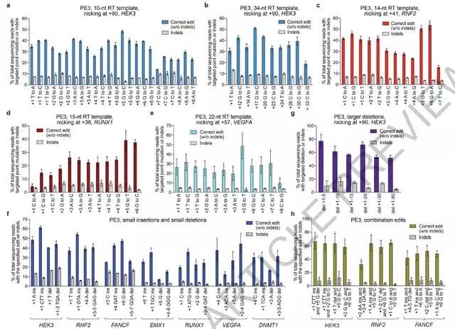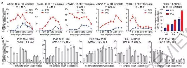 PE1和PE2对人类细胞中的基因组DNA进行初步编辑